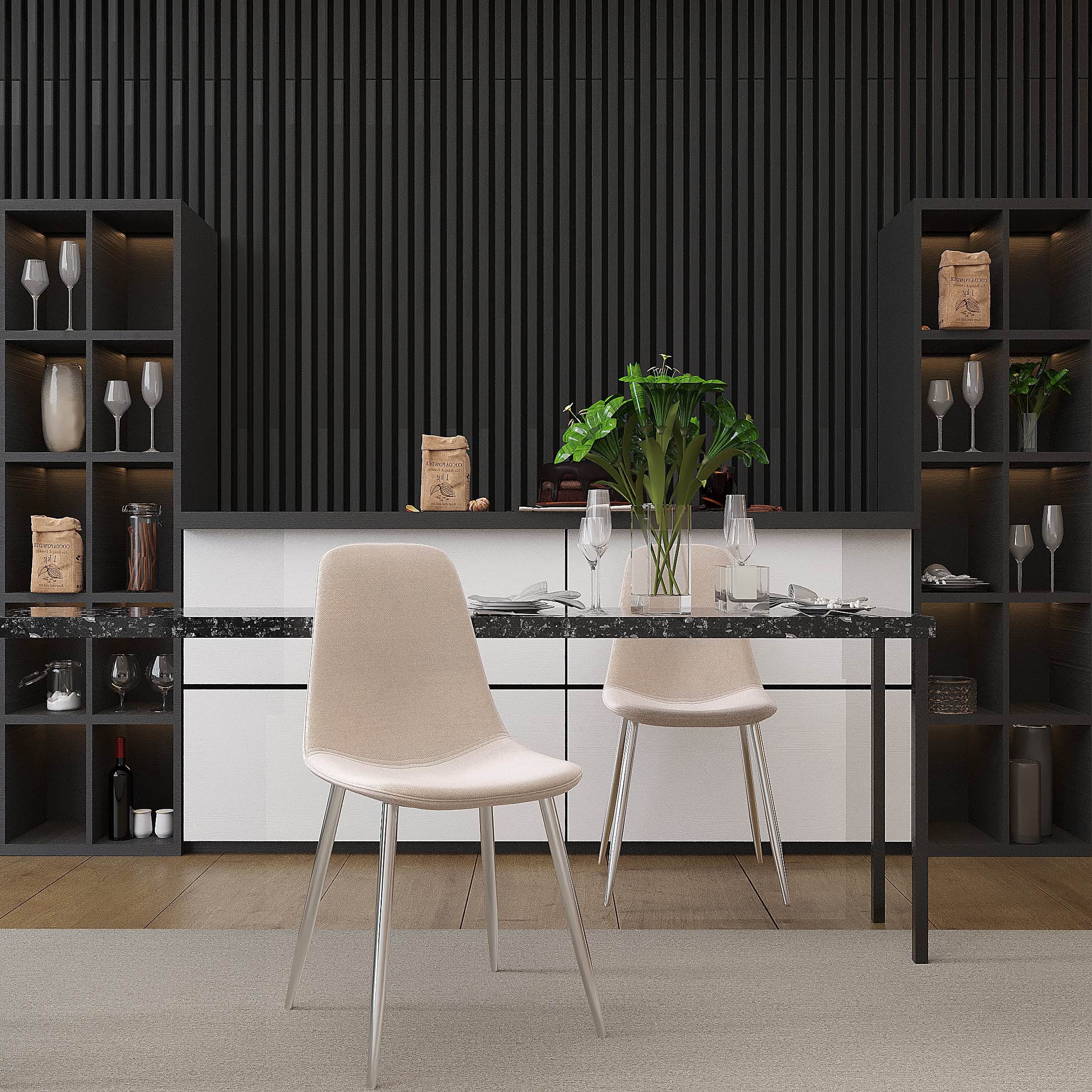 Ensemble de 4 chaises d'appoint Velets Sera en velours ivoire avec pieds chromés